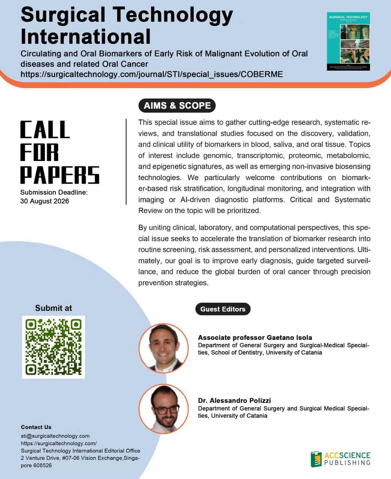 By uniting clinical, laboratory, and computational perspectives, this special issue seeks to accelerate the translation of biomarker research into routine screening, risk assessment, and personalized interventions. Ultimately, our goal is to improve early diagnosis, guide targeted surveillance, and reduce the global burden of oral cancer through precision prevention strategies.